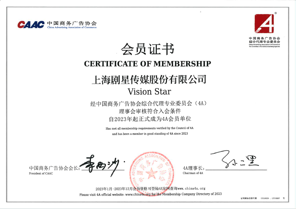 剧星传媒总裁助理兼高级财务总监周敏被聘任为“高级广告审查员”!
